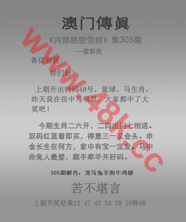 304期: ⑥肖 兔猴鸡羊牛 马48中