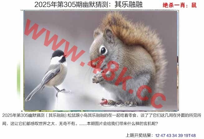 (1)2025年第305期幽默猜测(其乐融融):松鼠跟小鸟其乐融融的在一起吃着零食,谈了了它们这几周在外面的所见所闻,这让它们都感叹世界之大,无奇不有。....本期图片会给我们带来什么样的玄机呢?